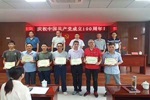 6月28日下午,我公司黨支部舉辦慶祝共產(chǎn)黨成立100周年活動(dòng)。公司邀請(qǐng)了徽州區(qū)應(yīng)急管理局黨組書記、局長(zhǎng)吳誠(chéng)志講黨史,公司黨建指導(dǎo)員范秀明講述黨員在公司經(jīng)濟(jì)發(fā)展中的作用、城東工業(yè)園黨建指導(dǎo)站副組長(zhǎng)方利榮作黨建工作指導(dǎo)。最后黨支部書記馬明海給公司7名黨員模范標(biāo)兵頒發(fā)證書,號(hào)召公司所有黨員、職工要向黨員模范標(biāo)兵學(xué)習(xí),愛崗敬業(yè)、努力創(chuàng)新,實(shí)現(xiàn)公司質(zhì)量發(fā)展。